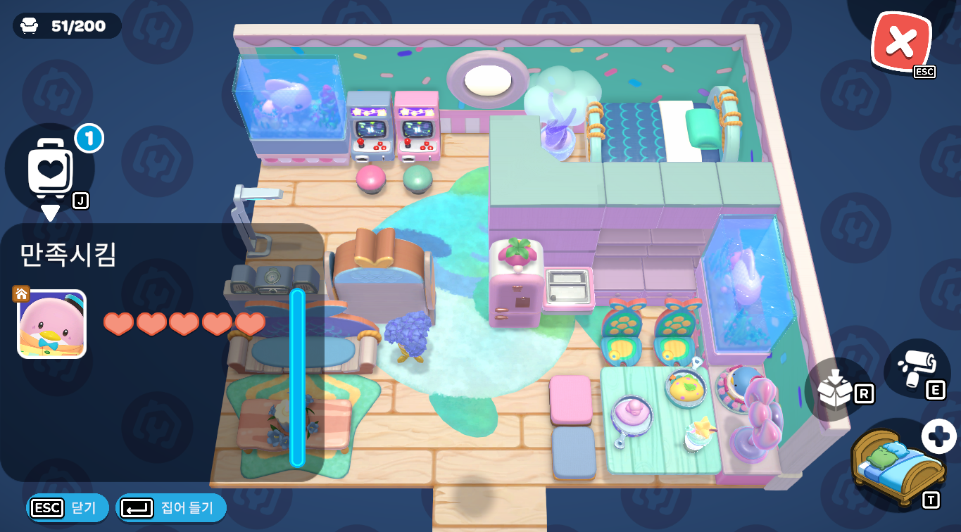 조건 달성만으로 힘든데 이 못생긴 태그로 하트 다섯개 챙기긴 다음 생에나 성공할듯... 완벽한 은닉법을 찾던가 레츠코 케이크를 중심으로 하늘색템을 놓을만한 환경이 갖춰지면